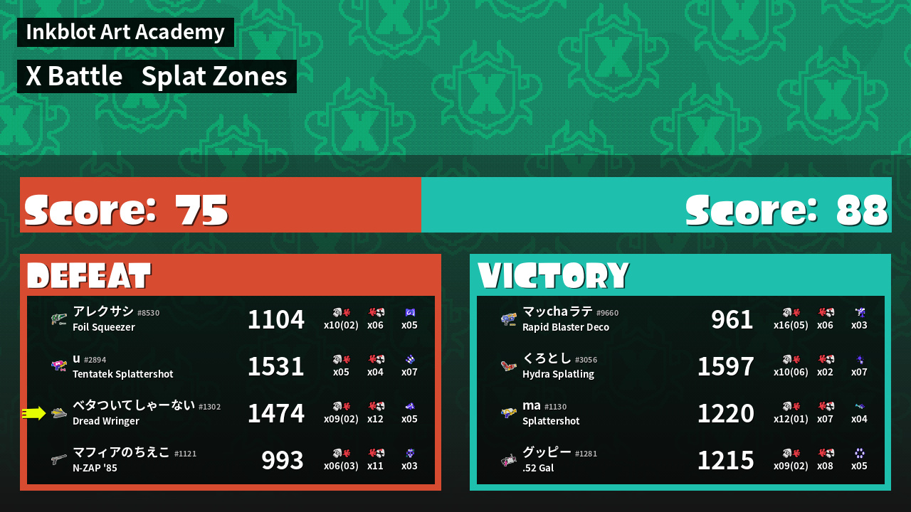 | Medals | #1 Splat Zone Inker #1 Popular Target #1 Reefslider User | ||