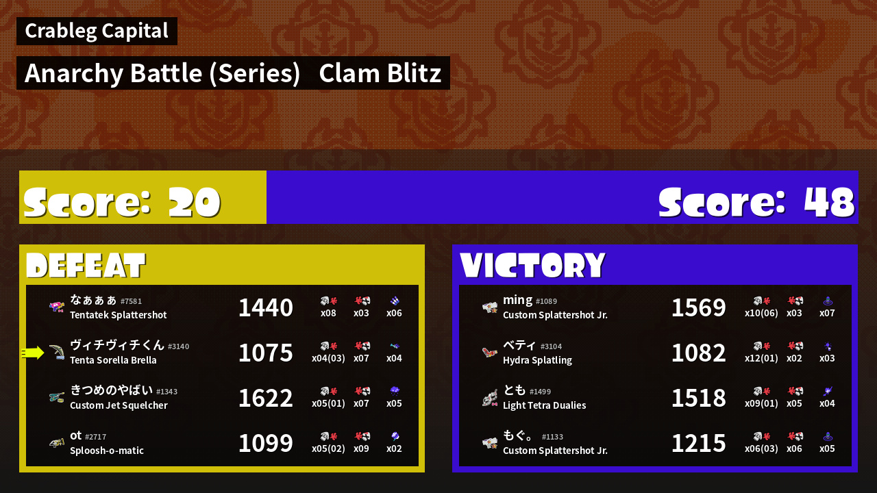 | Mode | Clam Blitz - Anarchy Battle (Series) | ||