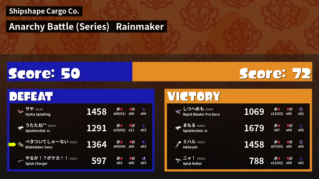 | Medals | #1 Popular Target #1 Splat Assister #1 Rainmaker Carrier | ||