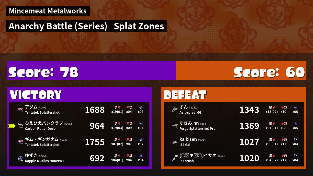 | Mode | Splat Zones - Anarchy Battle (Series) | ||
