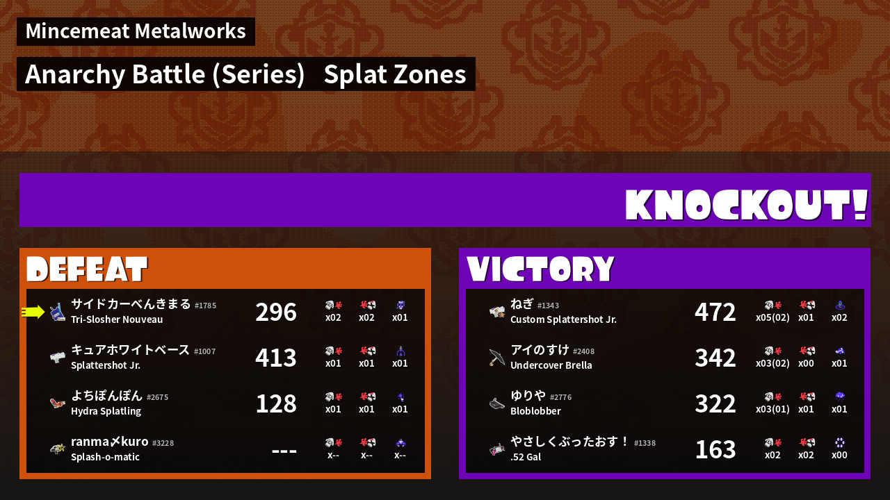 | Mode | Splat Zones - Anarchy Battle (Series) | ||