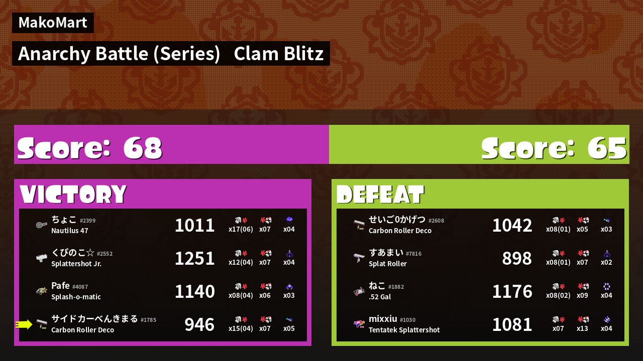 | Mode | Clam Blitz - Anarchy Battle (Series) | ||