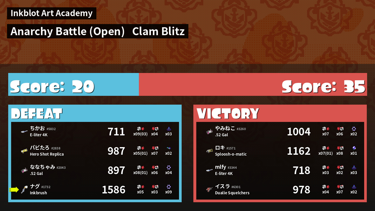 | Mode | Clam Blitz - Anarchy Battle (Open) | ||