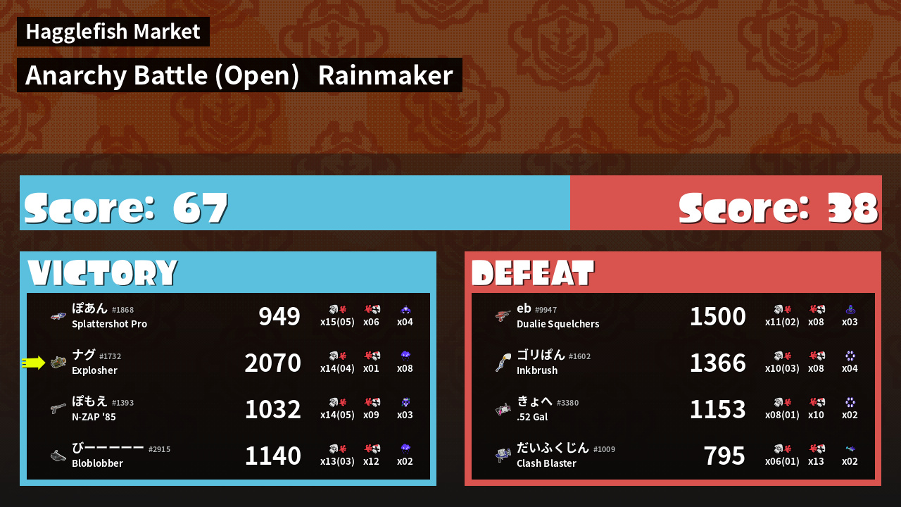 | Mode | Rainmaker - Anarchy Battle (Open) | ||