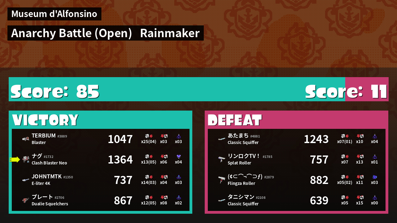 | Mode | Rainmaker - Anarchy Battle (Open) | ||