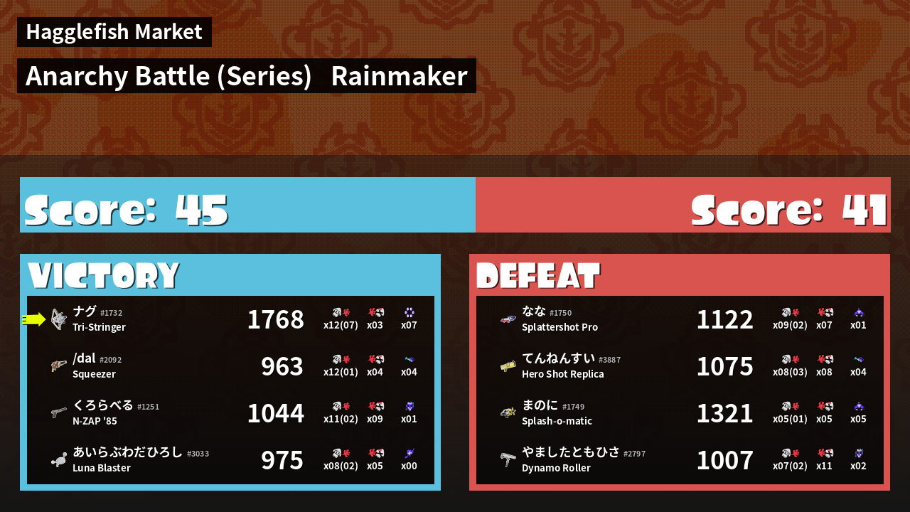 | Medals | #1 Overall Splatter #1 Score Booster #1 Turf Inker | ||