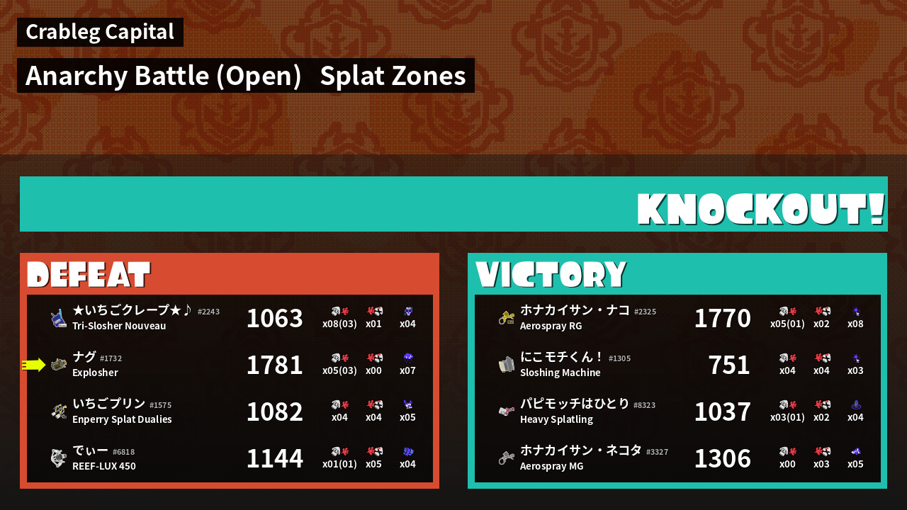 | Mode | Splat Zones - Anarchy Battle (Open) | ||