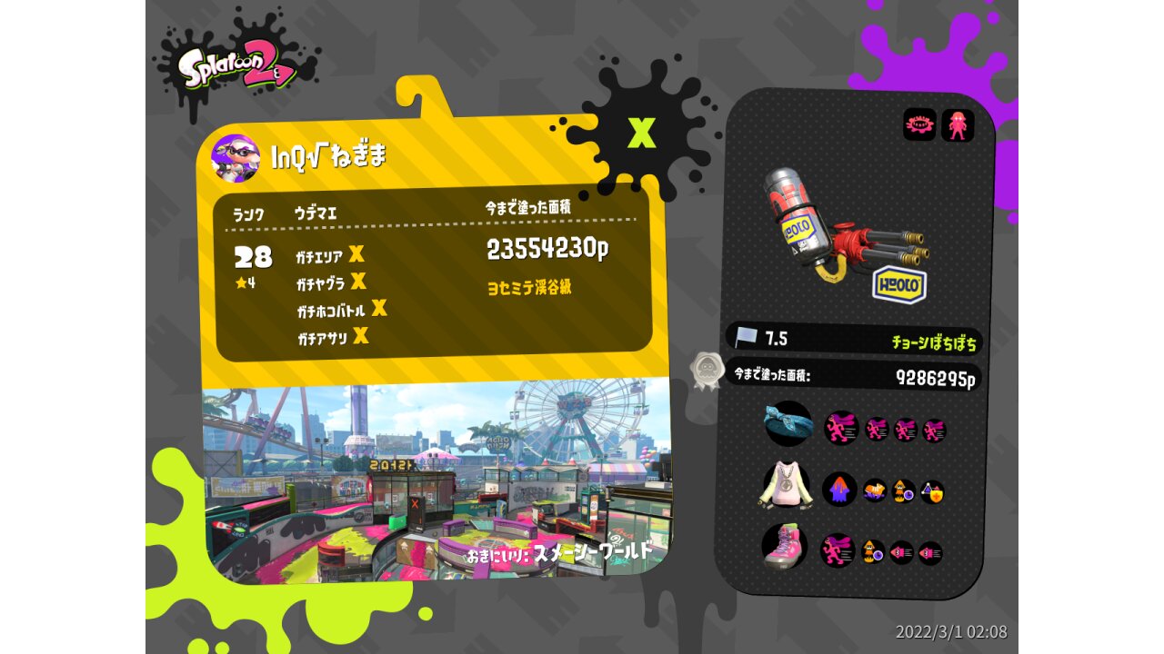 | Weapon | Custom Hydra Splatling ( Ink Mine, Ink Armor) | |||||||||||||||||||||||||||||||||||||