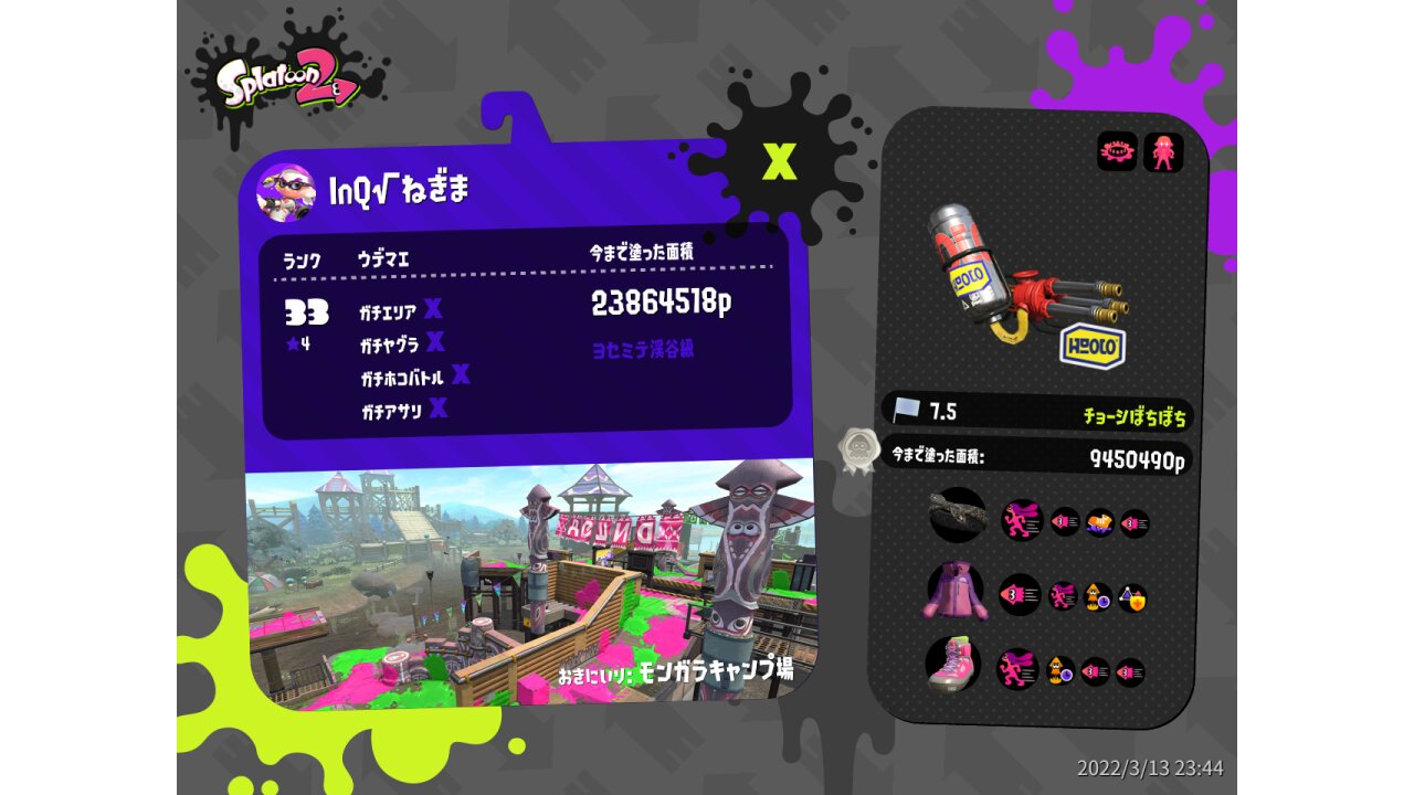 | Weapon | Custom Hydra Splatling ( Ink Mine, Ink Armor) | ||||||||||||||||||||||||||||||||||