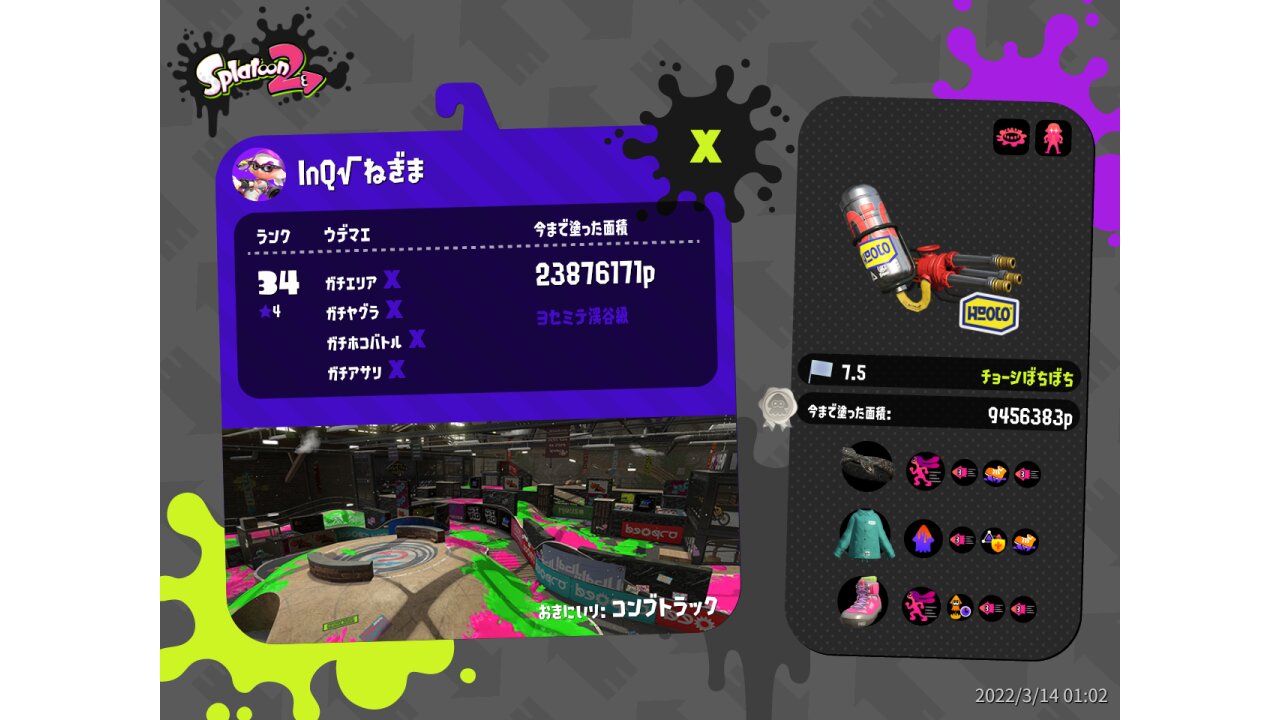 | Weapon | Custom Hydra Splatling ( Ink Mine, Ink Armor) | |||||||||||||||||||||||||||||||||||||
