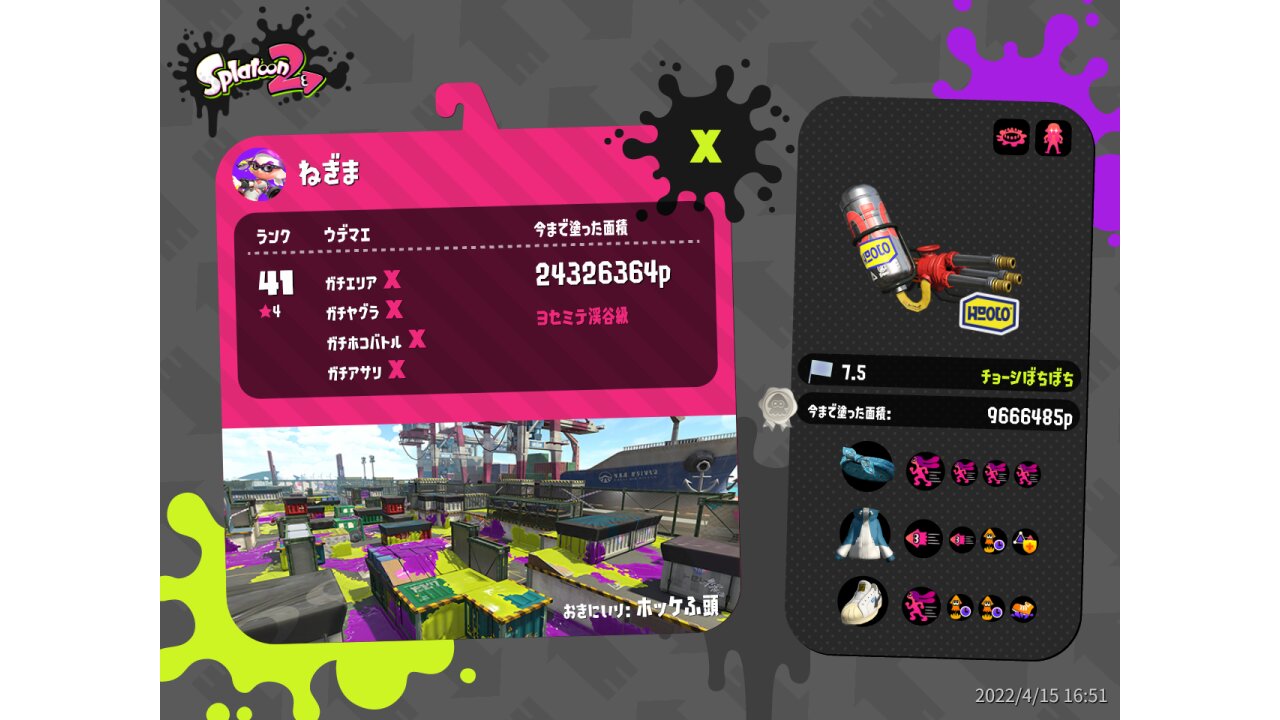 | Weapon | Custom Hydra Splatling ( Ink Mine, Ink Armor) | ||||||||||||||||||||||||||||||||||