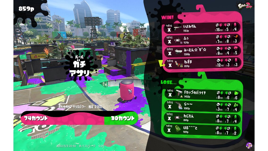 | Name | Weapon | Level | Rank | Inked | k+a/sp | k/d |