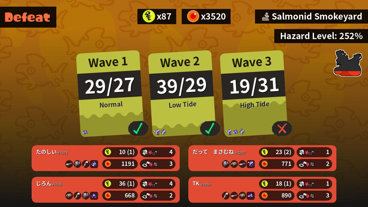 | Boss Salmonid | 21 | 12 | 17 | 16 |