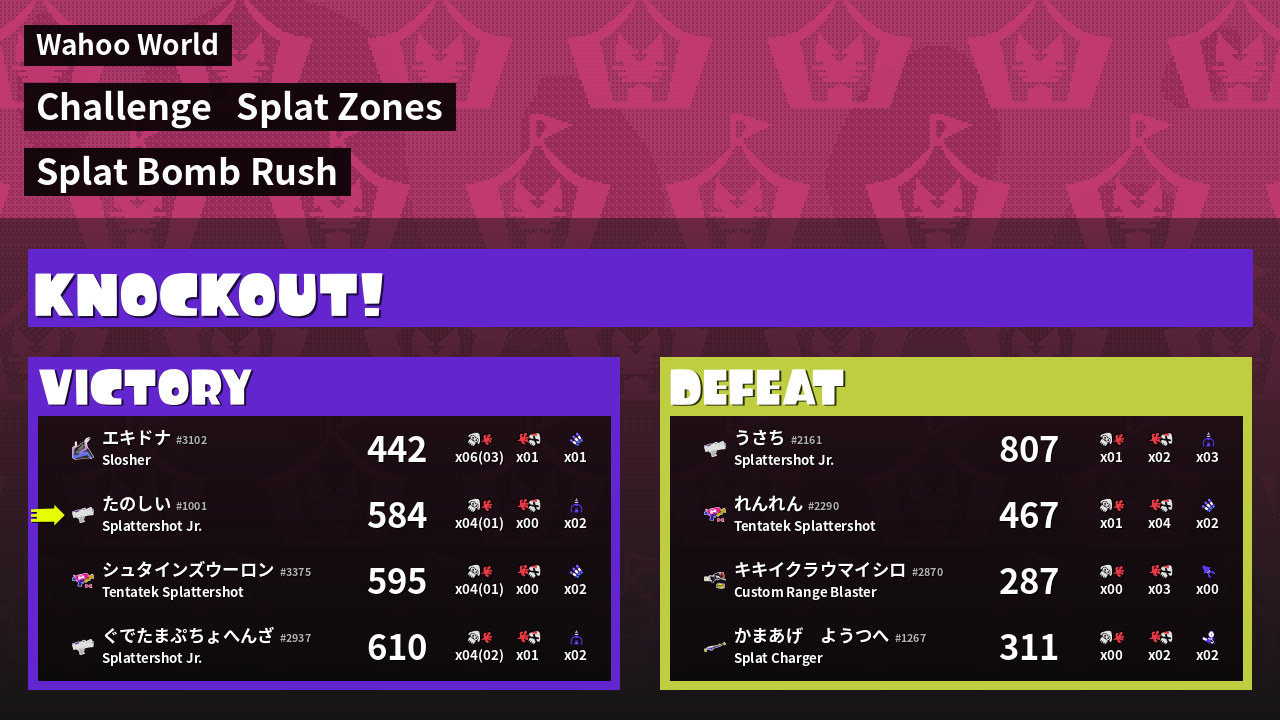 | Challenge | Splat Bomb Rush Let the Splat Bombs fly in this free-for-all! | ||