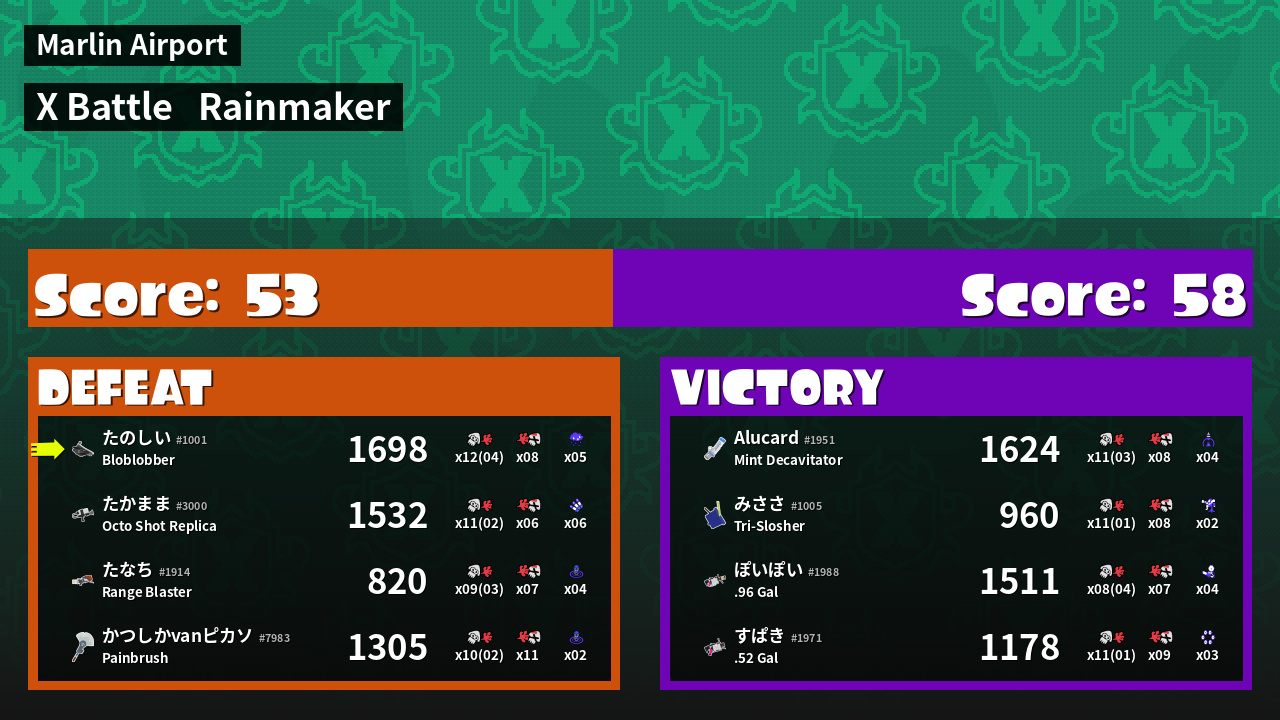 | Mode | Rainmaker - X Battle | ||