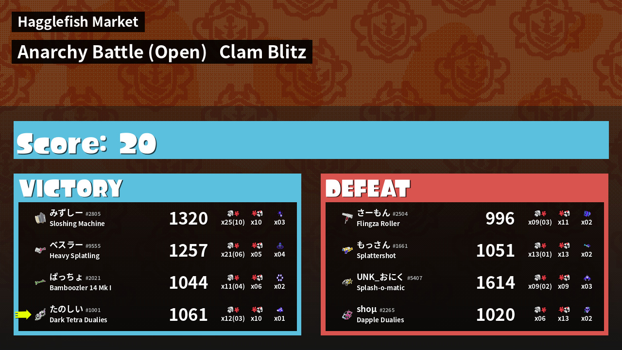 | Mode | Clam Blitz - Anarchy Battle (Open) | ||