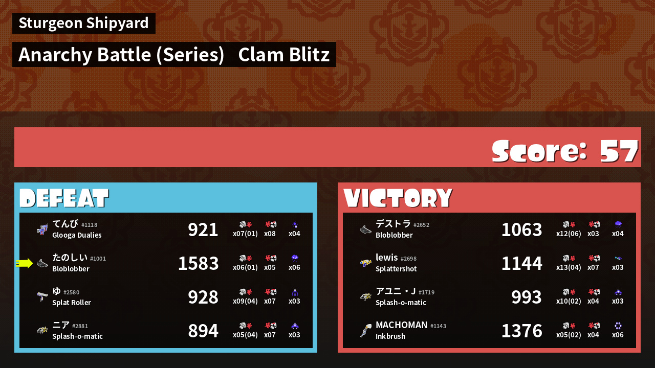 | Mode | Clam Blitz - Anarchy Battle (Series) | ||