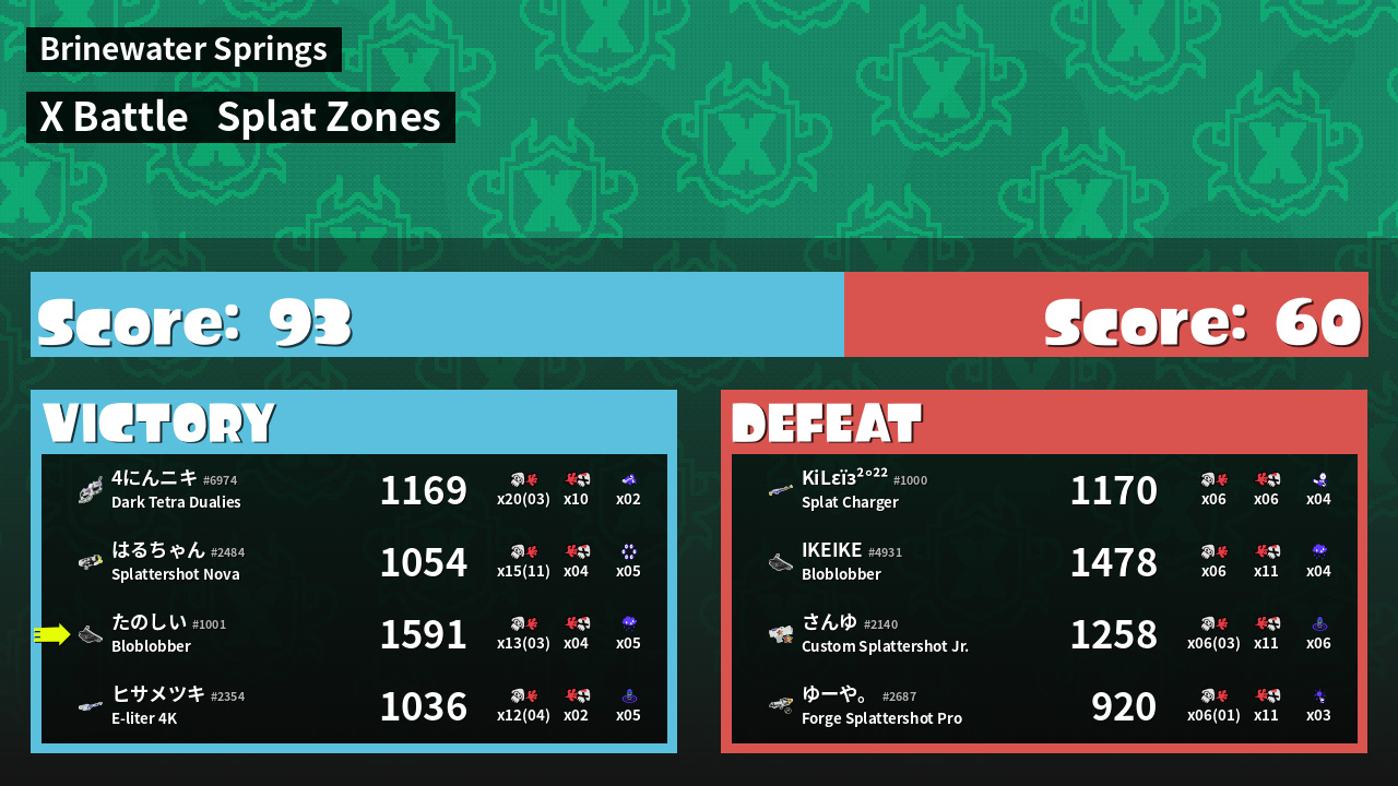 | Mode | Splat Zones - X Battle | ||