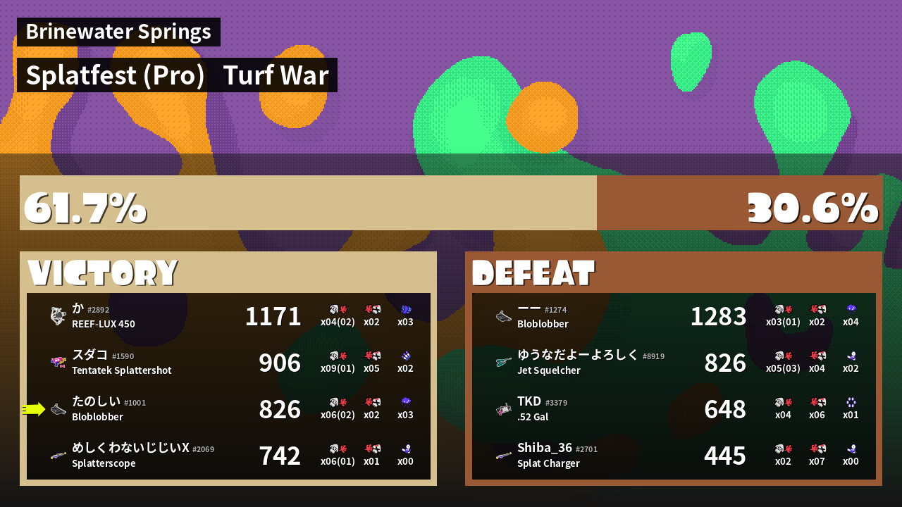 | Medals | #1 Splat Assister #1 Damage Taker #1 Ink Storm User | ||
