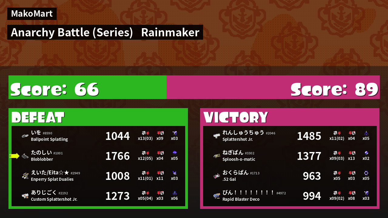 | Mode | Rainmaker - Anarchy Battle (Series) | ||