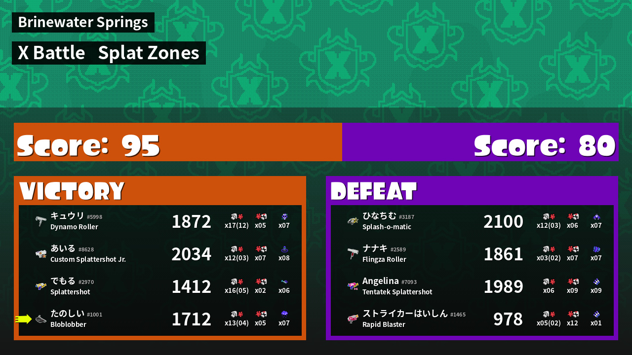 | Medals | #1 Splat Zone Hero #1 Ink Storm User #2 Super Jump Spot | ||