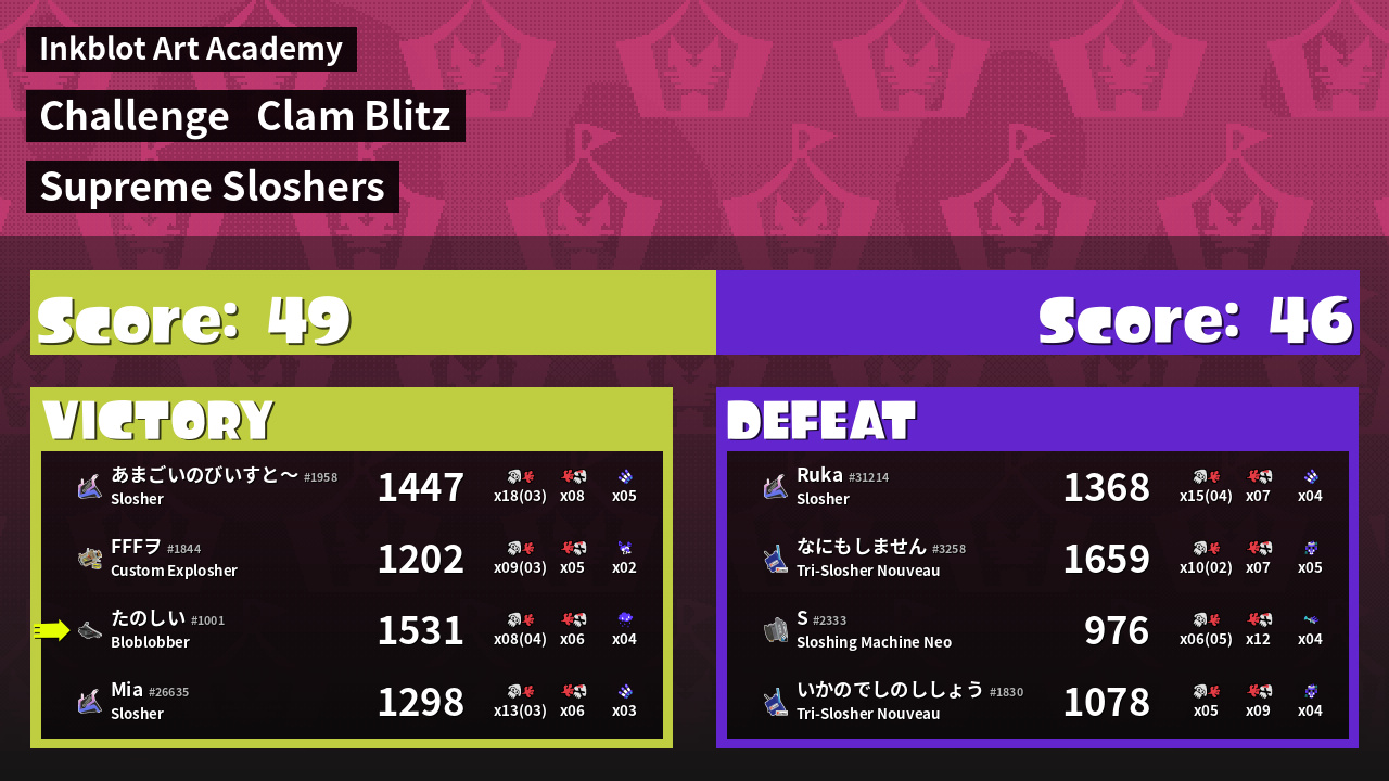 Challenge | Supreme Sloshers Go forth and slosher the opposition! | ||