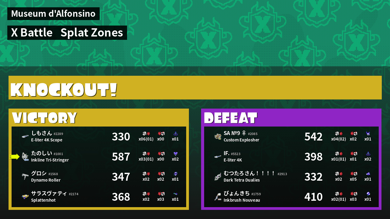 | Mode | Splat Zones - X Battle | ||