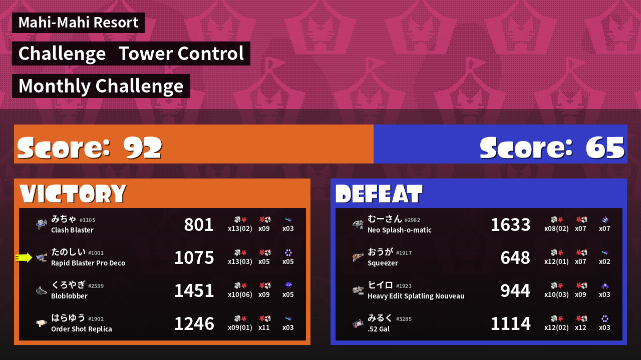 | Medals | #1 Overall Splatter Record-Score Setter #1 Tower Stopper | ||