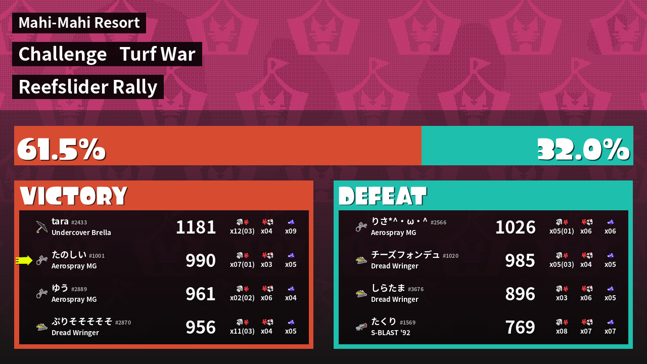 | Weapon | Aerospray MG ( Fizzy Bomb / Reefslider) | ||