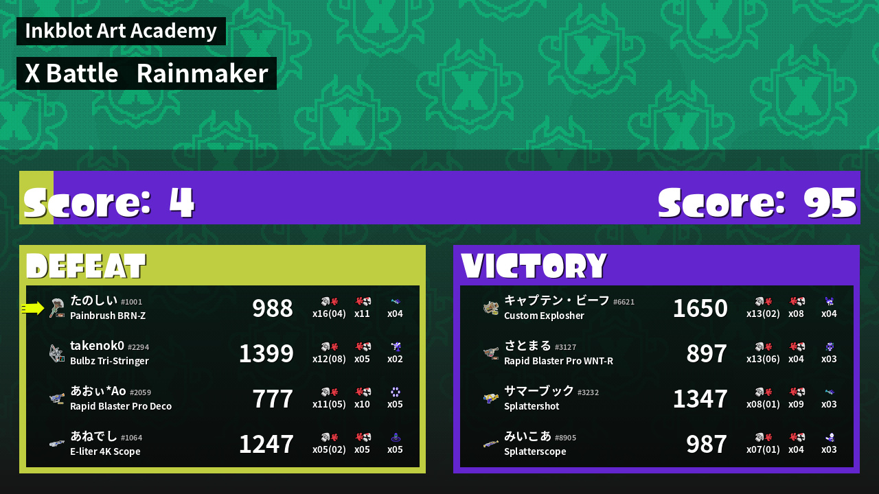 | Medals | #1 Overall Splatter #1 Score Booster Record-Score Setter | ||