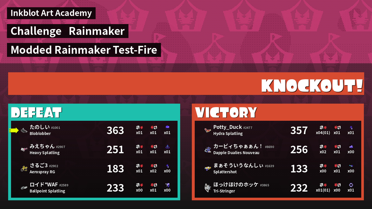 Kills / Deaths | 1 + 0 / 1 = Kill Ratio: 1.00 | ||