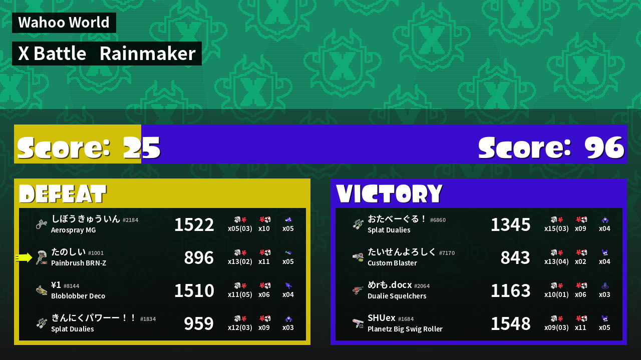 | Medals | #1 Overall Splatter #1 Enemy Splatter #1 Rainmaker Stopper | ||