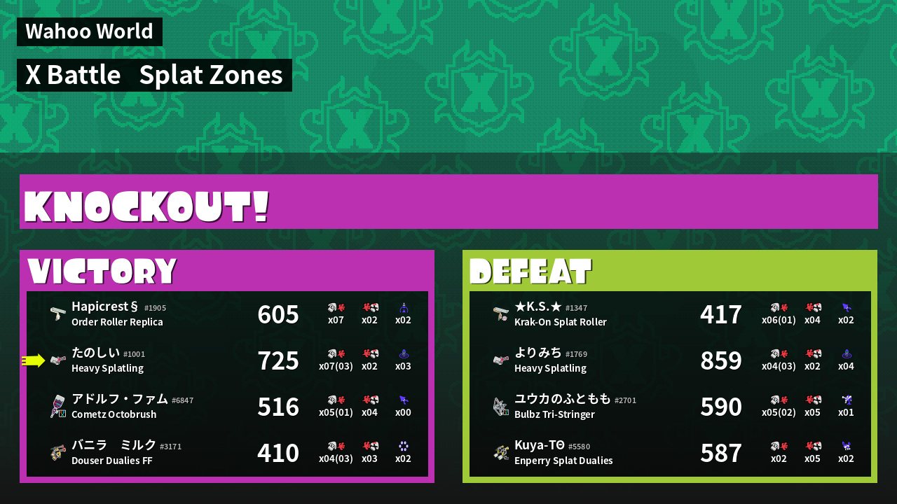| Mode | Splat Zones - X Battle | ||