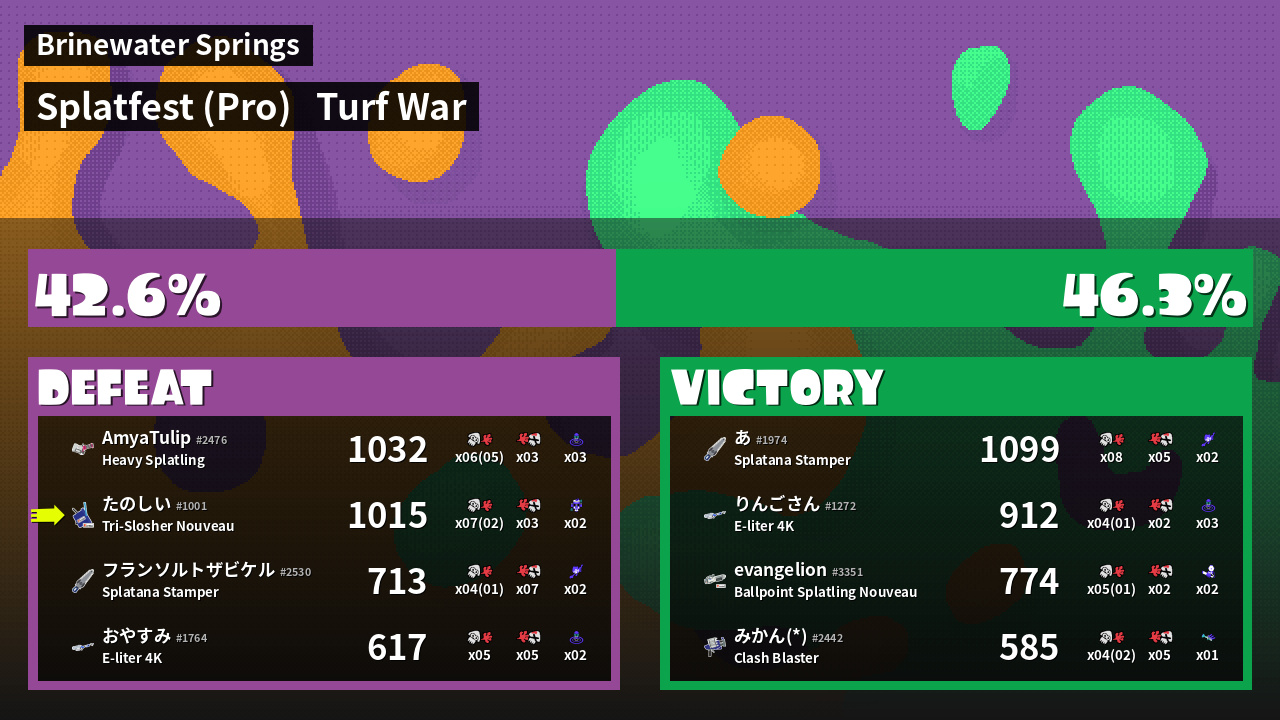 | Mode | Turf War - Splatfest (Pro) | ||