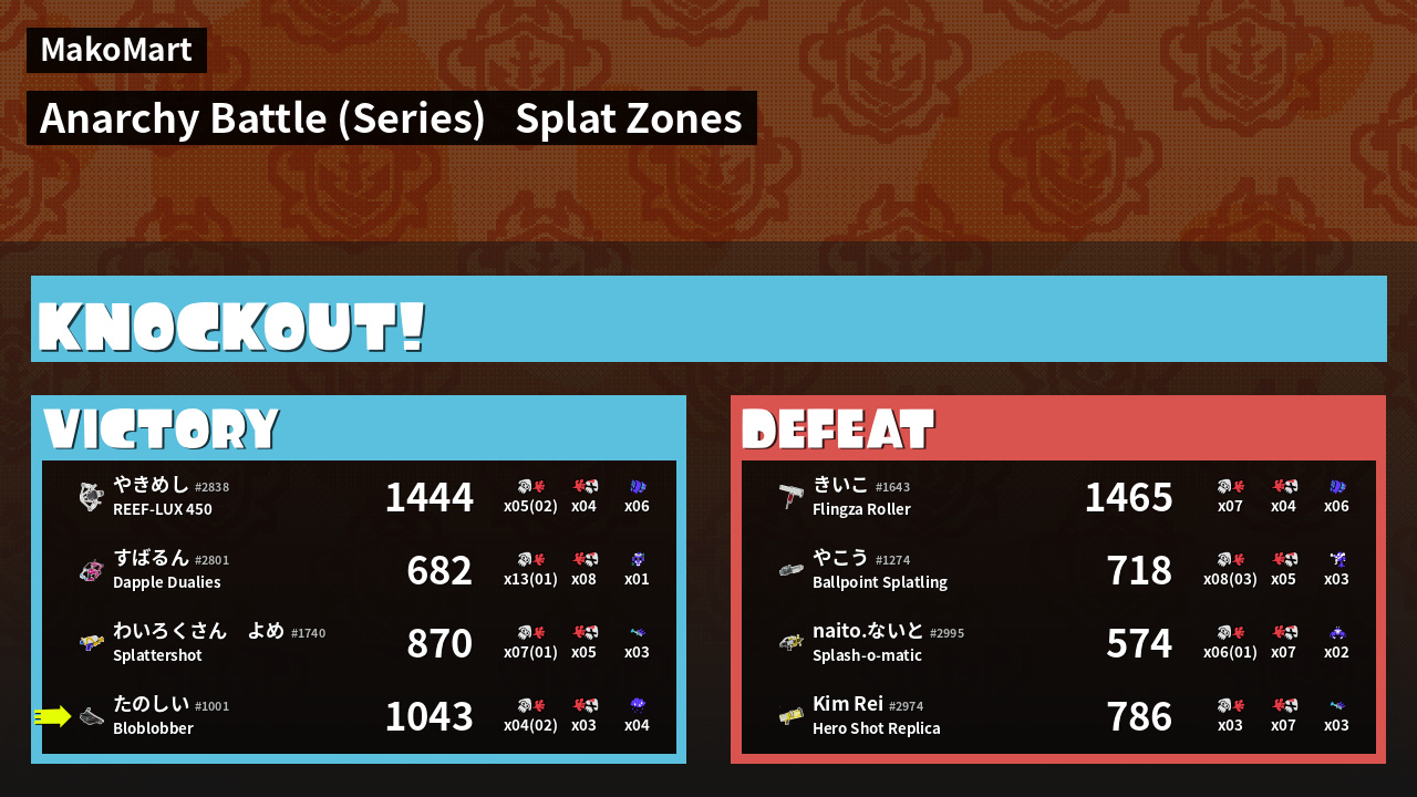 | Mode | Splat Zones - Anarchy Battle (Series) | ||