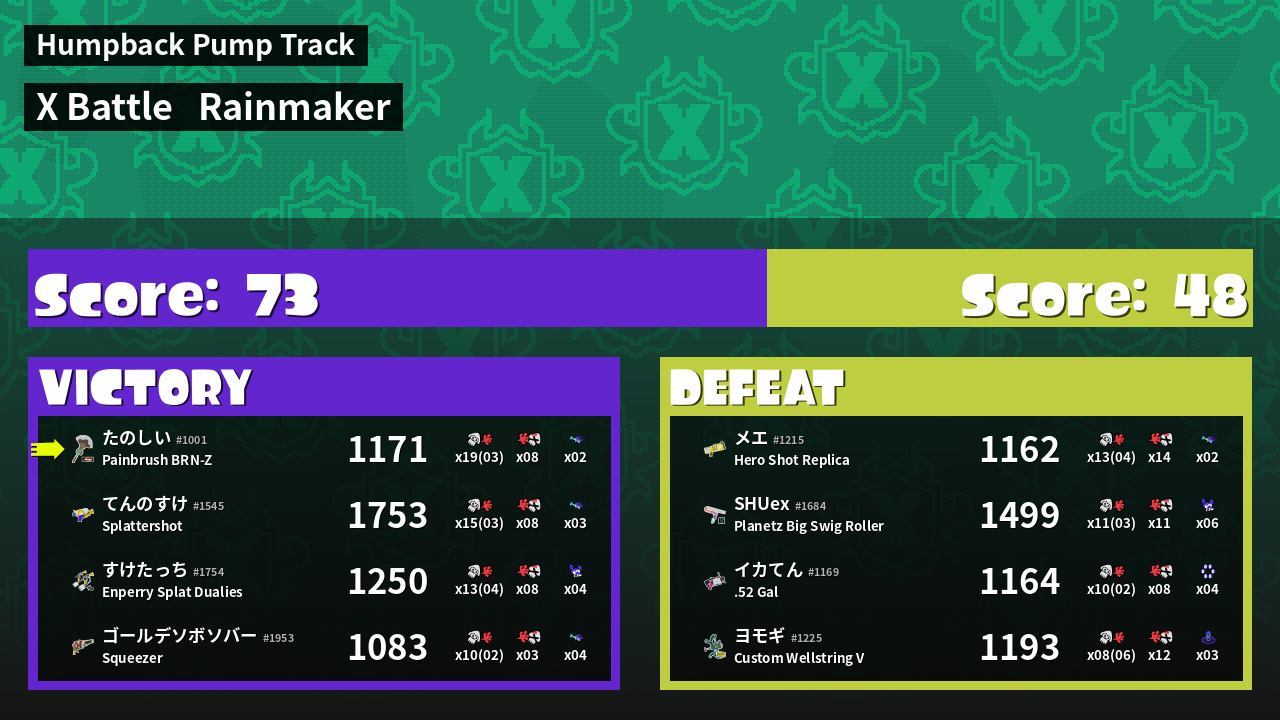 | Medals | #1 Overall Splatter #1 Popular Target #1 Super Jump Spot | ||