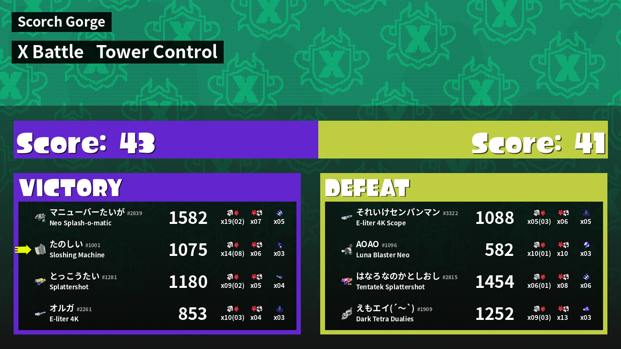 | Medals | #1 Popular Target #1 Splat Assister #1 Tower Stopper | ||