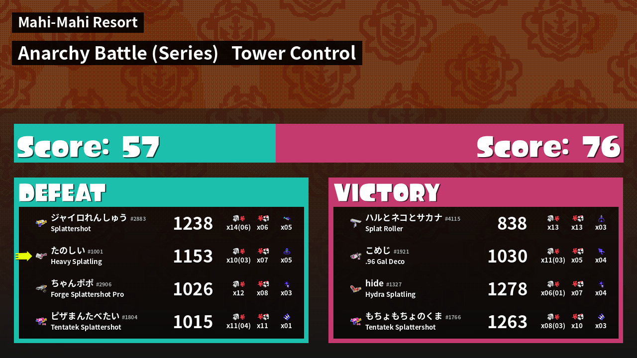 | Mode | Tower Control - Anarchy Battle (Series) | ||