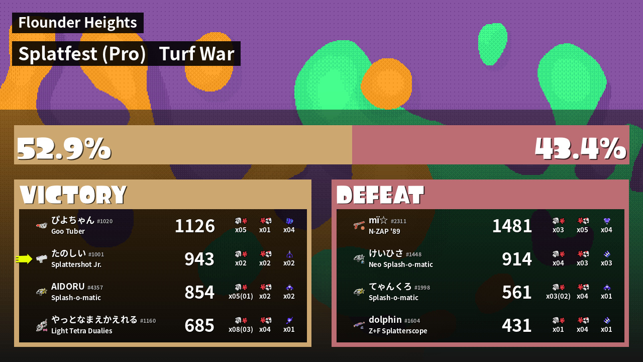 | Mode | Turf War - Splatfest (Pro) | ||