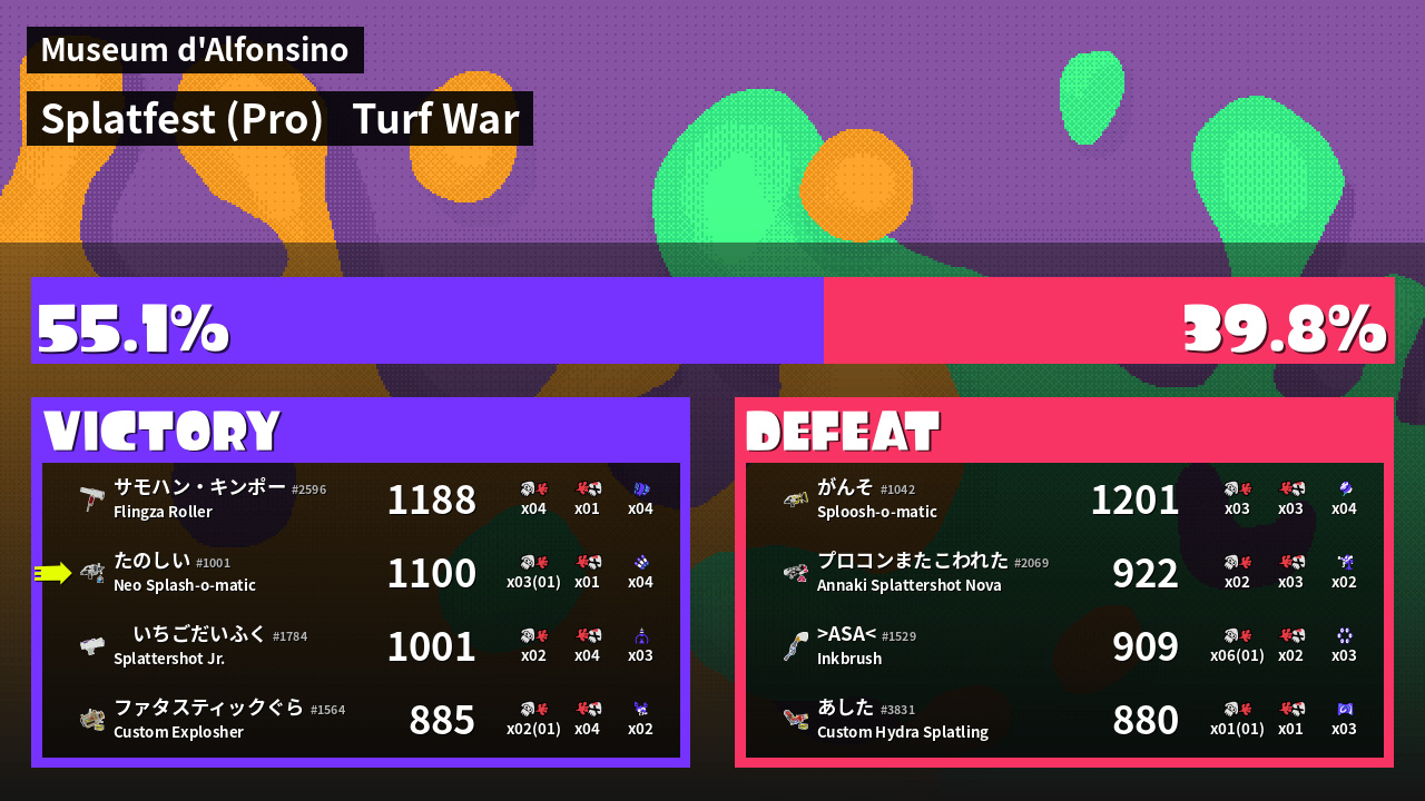 | Mode | Turf War - Splatfest (Pro) | ||