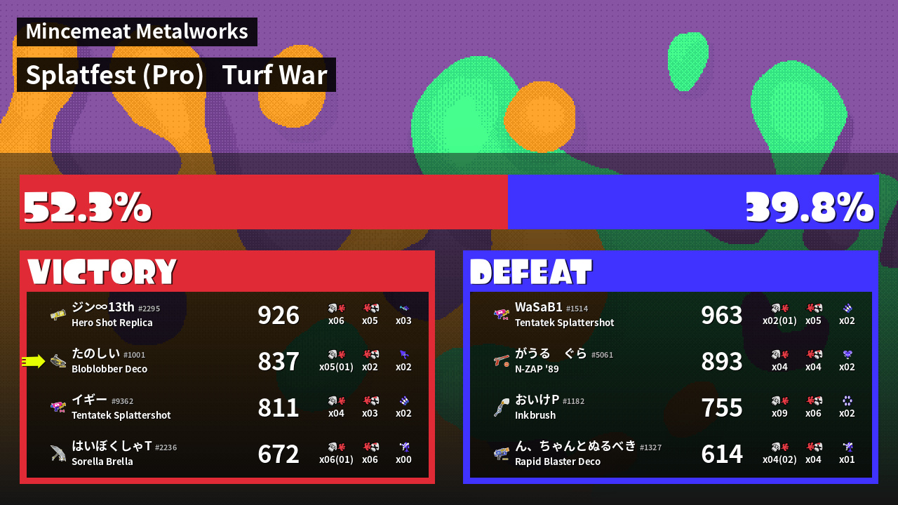 | Medals | #1 Super Jump Spot #1 Splat Assister #1 Damage Taker | ||