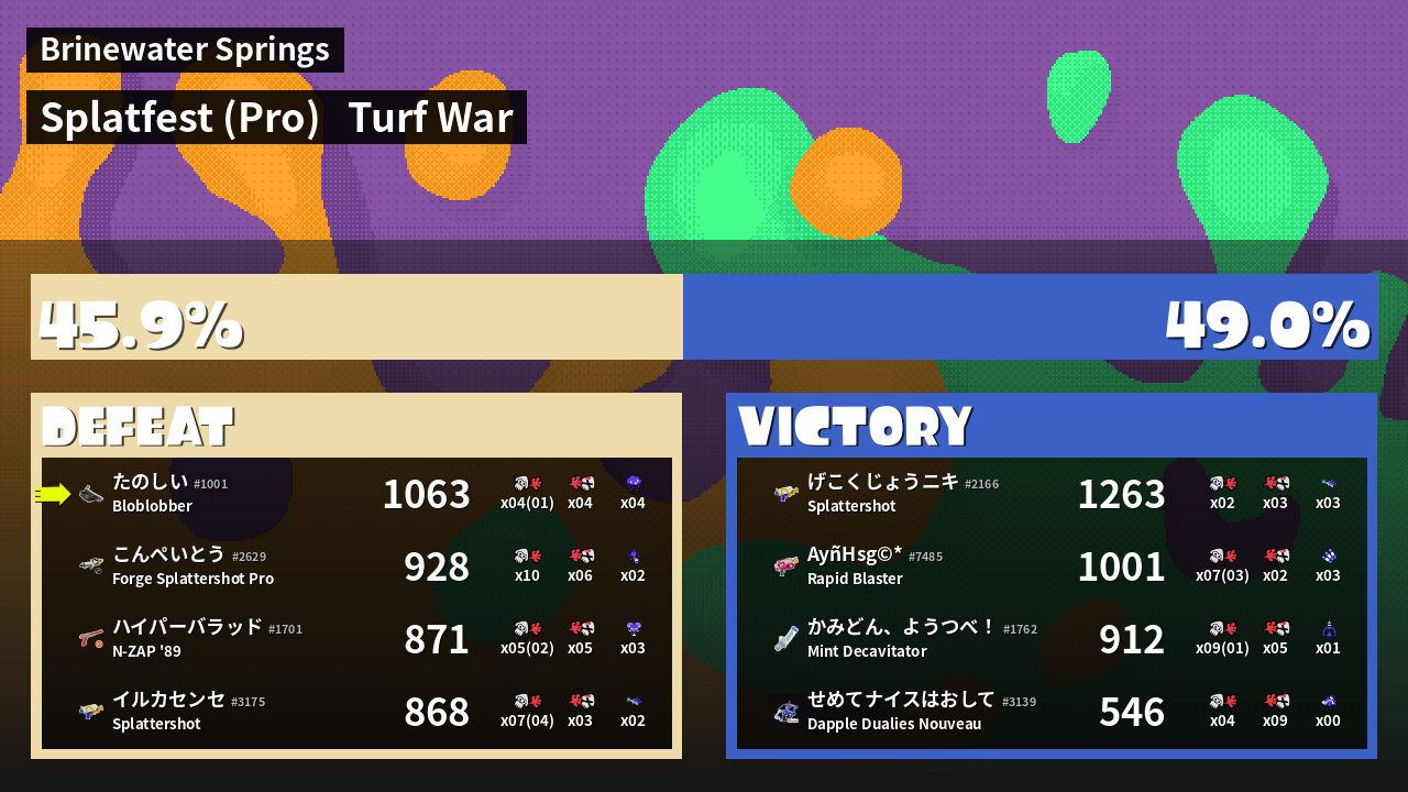 | Mode | Turf War - Splatfest (Pro) | ||