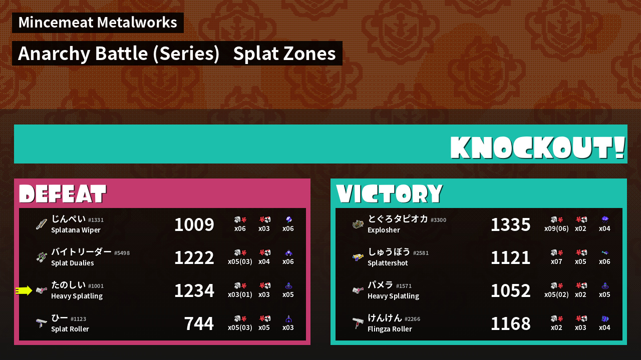 | Mode | Splat Zones - Anarchy Battle (Series) | ||