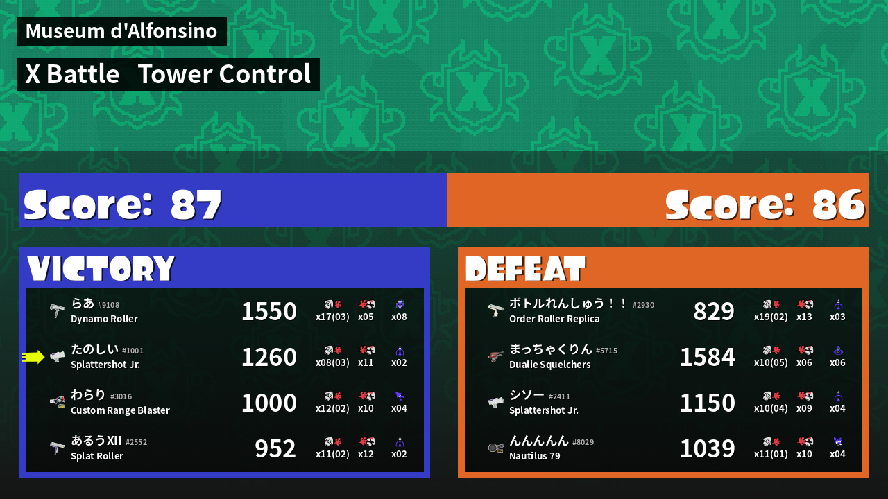 | Medals | #1 Score Booster #1 Splat Assister #1 Tower Stopper | ||