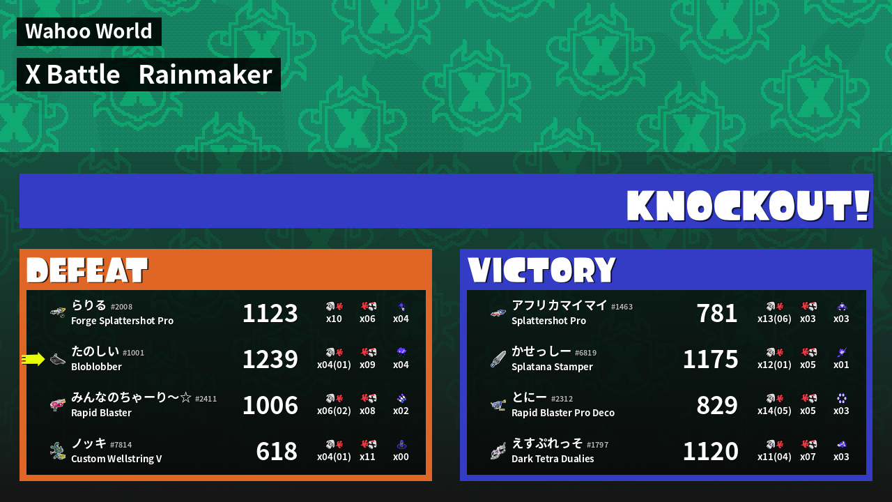 | Mode | Rainmaker - X Battle | ||
