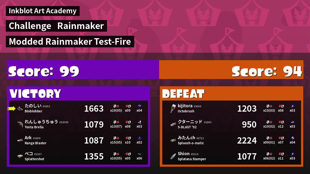 | Medals | #1 Overall Splatter #1 Score Booster Record-Score Setter | ||