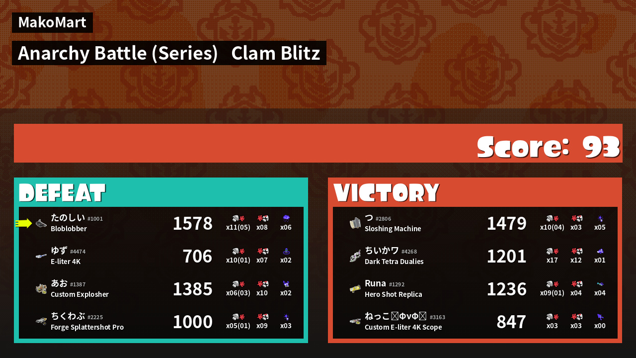 | Mode | Clam Blitz - Anarchy Battle (Series) | ||