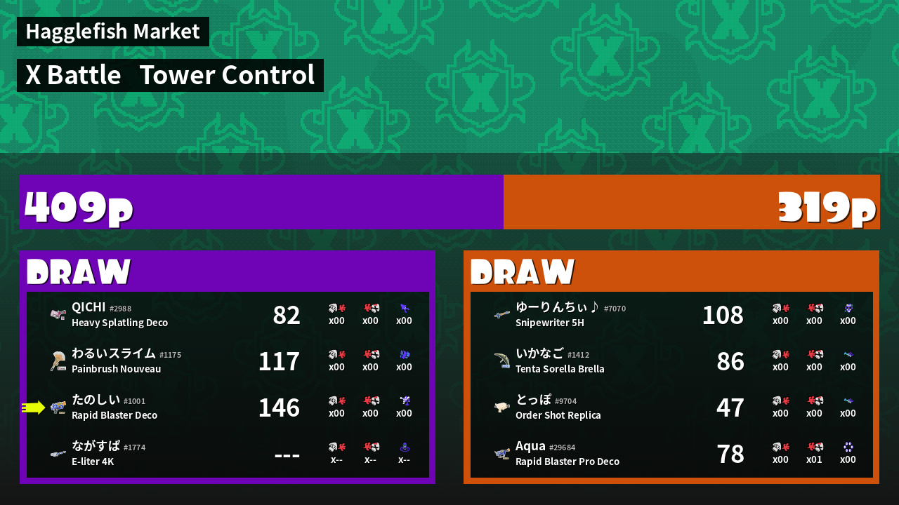 | Mode | Tower Control - X Battle | ||
