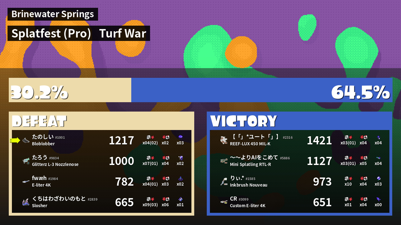 | Mode | Turf War - Splatfest (Pro) | ||