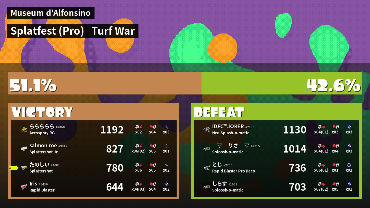 | Mode | Turf War - Splatfest (Pro) | ||